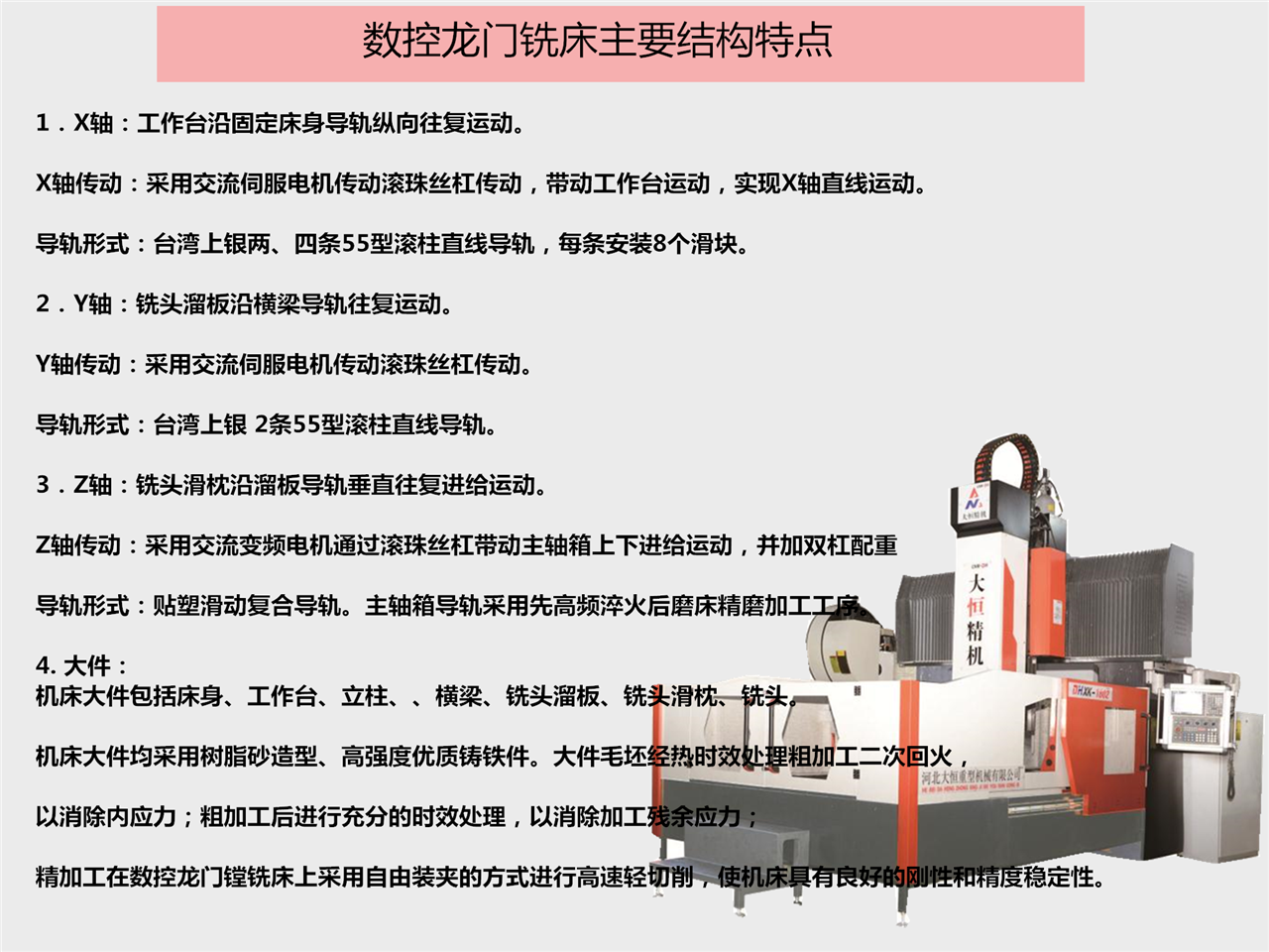 5. 線軌:龍門銑(xi)床XYZ軸均采用(yong)中國台灣*55滾(gǔn)柱線軌,比配(pèi)滾珠線㊙️軌承(chéng)載能力增強(qiáng)1.5倍。