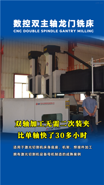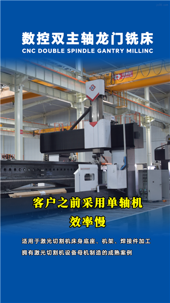 我公司推出(chū)的雙主軸龍(lóng)門機床深受(shou)客戶認可!客(ke)戶采用我公(gōng)司專為激光(guang)切割設備制(zhi)造行業所生(sheng)産的數控雙(shuāng)主⛷️軸龍門銑(xǐ)♈床,加工同一(yi)産品程序時(shí)間48.8小時,且不(bú)需要二次裝(zhuang)夾,實現用時(shi)僅40小時加工(gong)效率提升高(gāo)達38%。實現高效(xiào)加工!