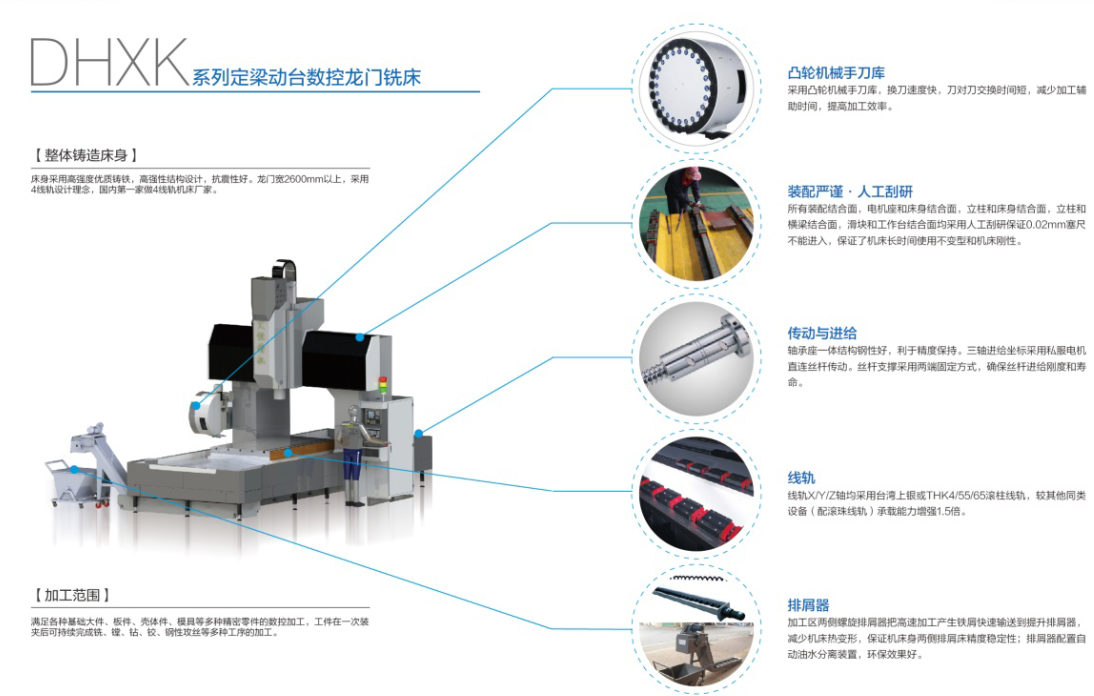 大恒定梁動(dong)台式數控龍(long)門銑床性能(neng)特點