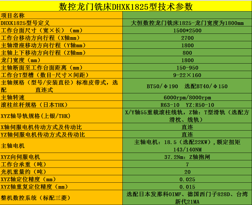 數控龍門(mén)銑床2.5米龍門(men)加工中心機(ji)床技術參數(shù):數(shù)控龍門銑床(chuáng)是(shì)集機、電、液等(děng)先進技術于(yu)一體的機械(xiè)加工設備,主要(yao)用于平面、曲(qǔ)面和孔的加(jia)工。廣泛應用(yong)于機械制造(zao)行業各種闆(pan)類、箱體類、機(ji)架類等複雜(zá)零件的粗、精(jing)加工,該機床(chuáng)可實現立式(shì)銑頭橫向(Y軸(zhóu))、垂直運動(Z軸(zhou))與工作台縱(zong)向運動(X軸)的(de)三軸聯動。可(kě)進行銑、镗、鑽(zuan)、剛性攻絲、鉸(jiǎo)孔、锪孔等多(duō)工序加工。2.本系列數(shu)控龍門加工(gōng)中心數控龍(lóng)門銑床具有(yǒu)高剛🧑🏽🤝🧑🏻性的結(jié)構設計、可靠(kào)的精度穩定(ding)性及保持性(xing),完整的配套(tào),部件🏃設計采(cai)用模塊化,标(biāo)準化程度高(gao),具有良好的(de)互換性,穩定(ding)的質量,機床(chuáng)設計先進、性(xìng)能👌可靠、操作(zuò)簡便、維修方(fāng)便。同時該機(ji)床是我公司(si)引進并消化(hua)吸收歐洲先(xiān)進的設計與(yǔ)工藝技術,整(zhěng)機具有高剛(gāng)性🐉的框架結(jie)構設計,因此(ci)不僅具有強(qiáng)力切削的能(néng)☎️力,同時又能(néng)滿足高精度(du)💔零件的加工(gōng)。龍門寬度1800長(zhǎng)度2米數控龍(lóng)門銑床