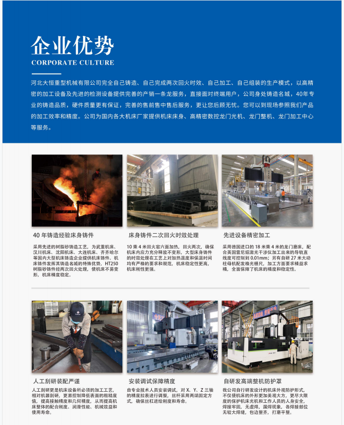為了保(bǎo)持機床構件(jian)的穩定性,數(shu)控龍門銑床(chuáng)的框架、橫☔梁(liáng)等都是采用(yòng)HT250樹脂砂(sha)鑄件,經2次回火實效(xiào)處理,粗精加(jiā)工,*按标準化(hua)生産流程。